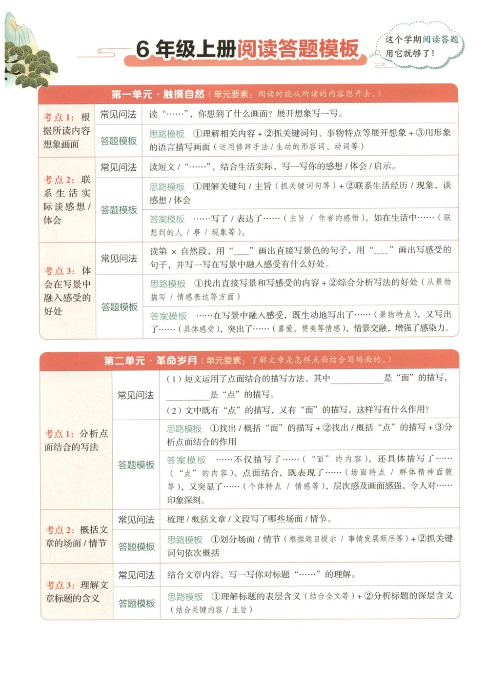 25秋开心语文同步阅读答题模版 1-6年级上册