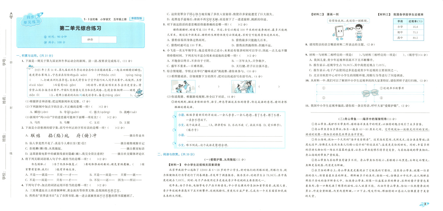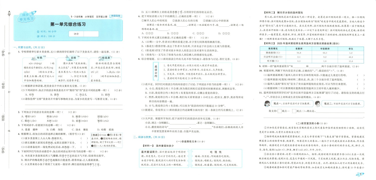 1-6年级全套,语文上册人教版25秋《53全优卷新题型版》