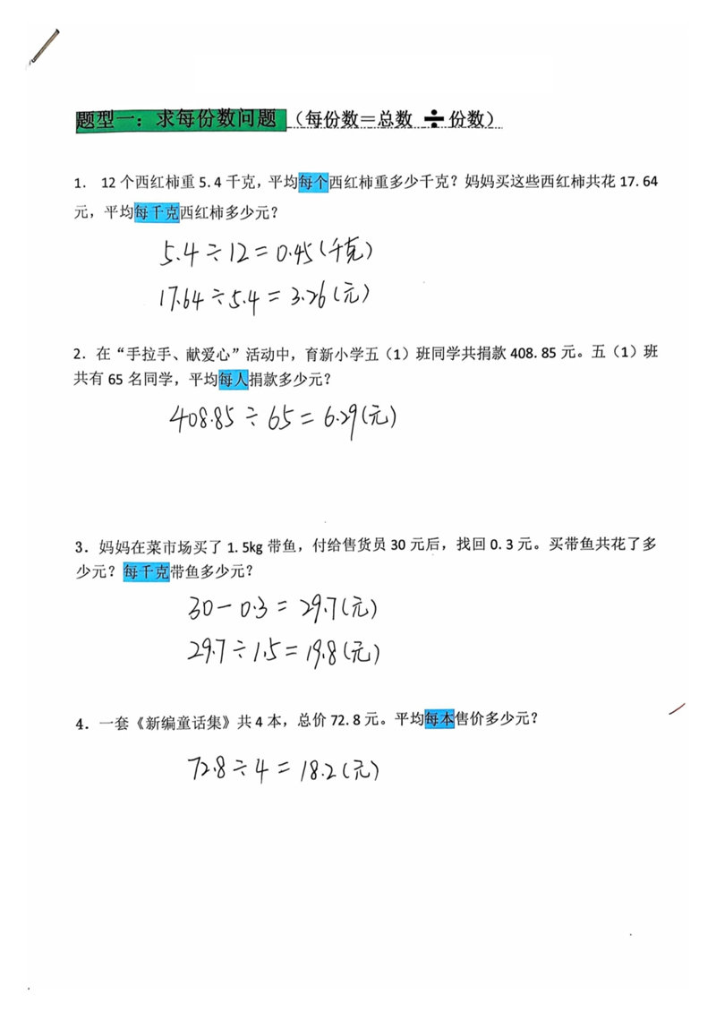 五年级上《数学小数除法解决问题专项练习》 浏览数: 478 来源: 互联网 (完整版文件下载地址在文章结尾) 五年级上《数学小数除法解决问题专项练习》 (扫描上方↑二维码关注公众号:蓝海龟。及时获取更多资料~)