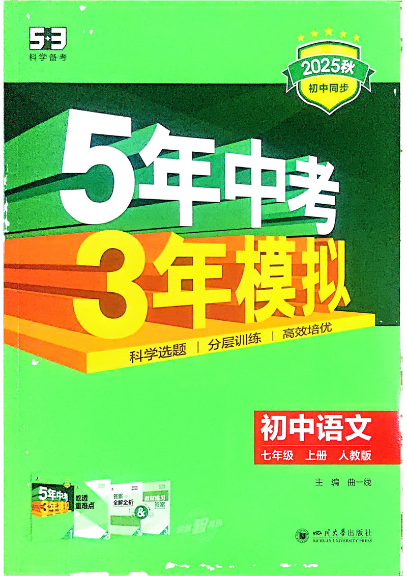 2026五年中考三年模拟(五三同步)七上语文+吃透重难点+答案解析测,PDF电子版免费下载 浏览数: 500 来源: 互联网 (完整版文件下载地址在文章结尾) 《语文7年级上册》《语文7年级上册吃透重难点》《语文7年级上册解析册》五年中考,三年模拟 (扫描上方↑二维码关注公众号:蓝海龟。及时获取更多资料~)