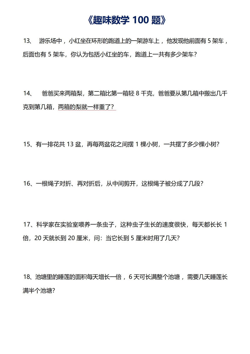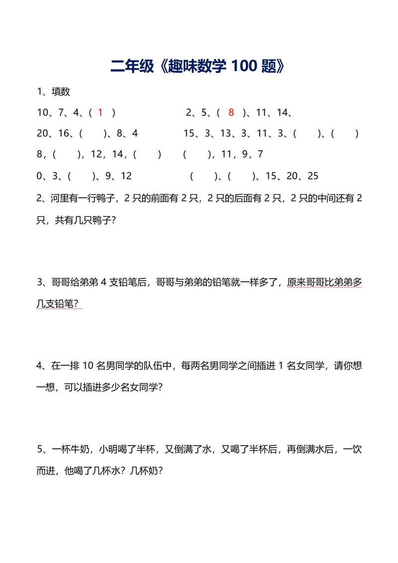 各位二年级家长好~ 从事低年级数学教学多年,今天给孩子们整理了数学思维训练趣味 100 题(含答案) ,专为期末冲刺和思维提升设计!